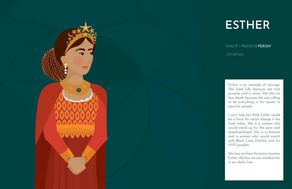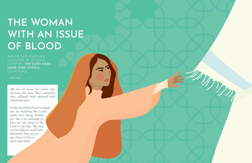 The booklet contains vector illustrations of several women from the scriptures with stories, quotes, scriptures and commentaries on how these women helped me come to know Christ.
